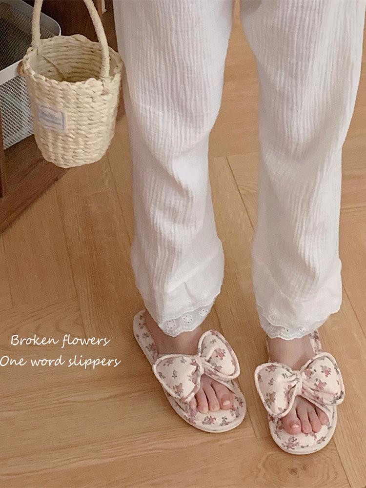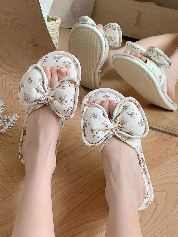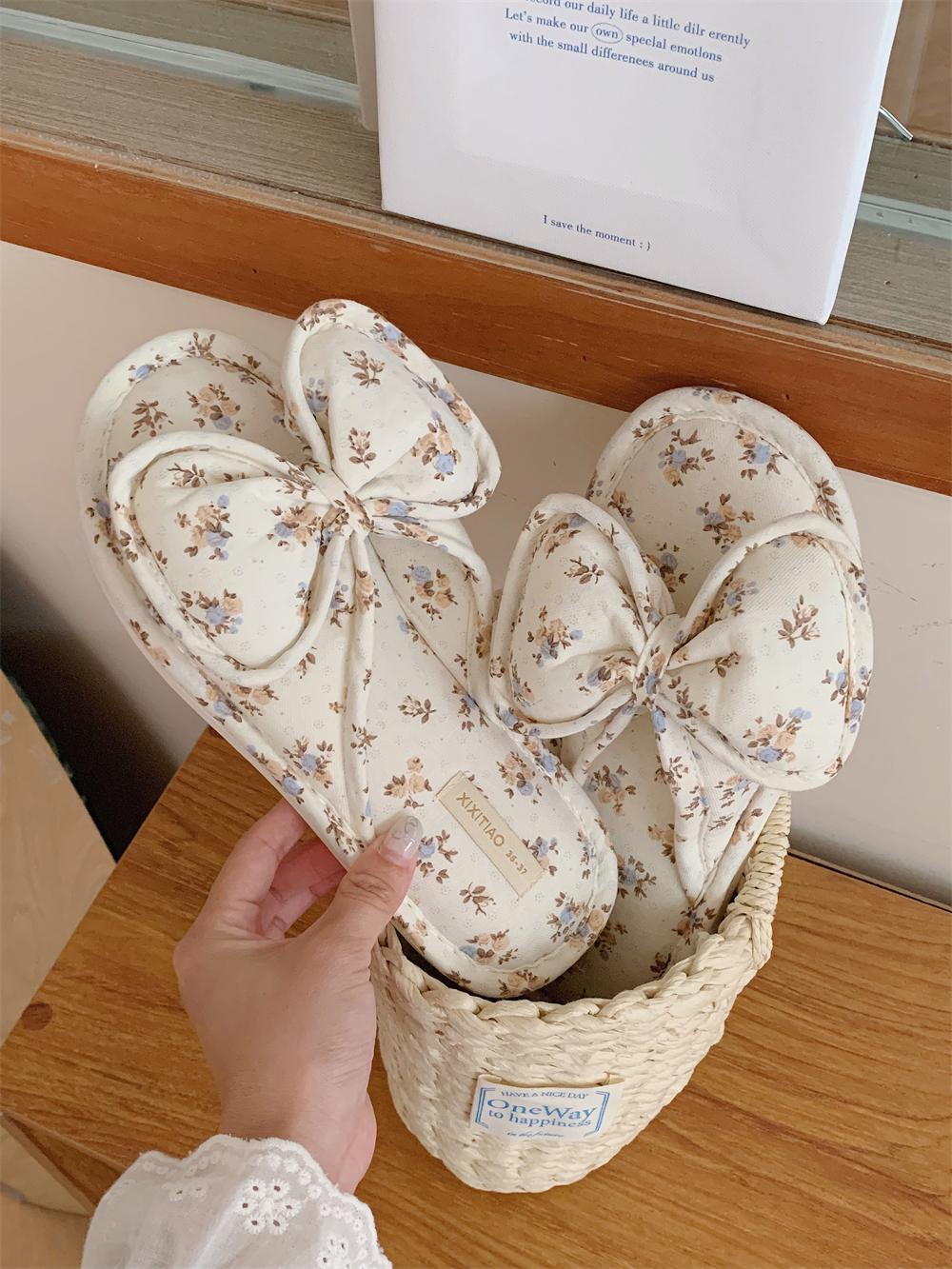 碎花蝴蝶結棉麻居家拖鞋|防滑透氣四季可穿 韓系少女風室內拖